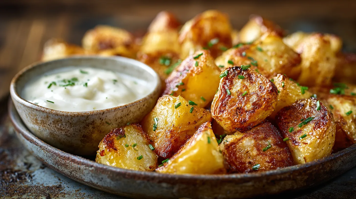 Pommes de terre au four croustillantes et sauce à l’ail